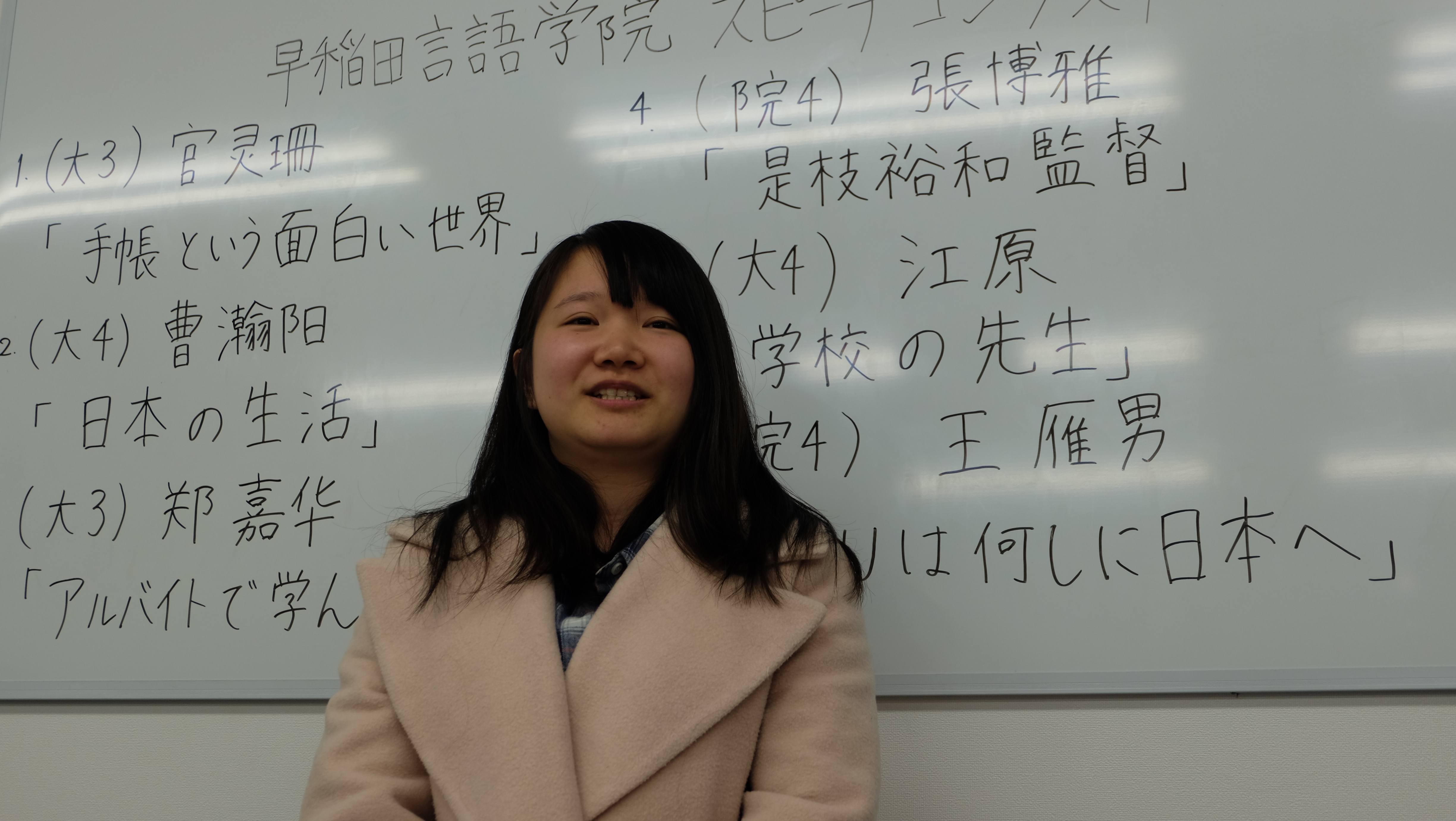 2017年1月24日,早稻田言语学院毕业班学生举行了演讲比赛。在众多的学生面前,参赛者没有什么紧张的神情,自然充分发挥了平时在课堂上培养的日语能力。他们选择了饶有兴趣的话题,比如,日本和中国的不同等等,把自己的感想用日语流畅地表达出来。评委们都说,要选出优胜者太难了,因为大家都演讲得很不错。经过慎重评审,上午班国公立大学升学班的高山同学(演讲题目:「とても悲しい新年」)、下午班大学升学3班郑嘉华同学(演讲题目:「アルバイトで学んだこと」)获学院长奖。