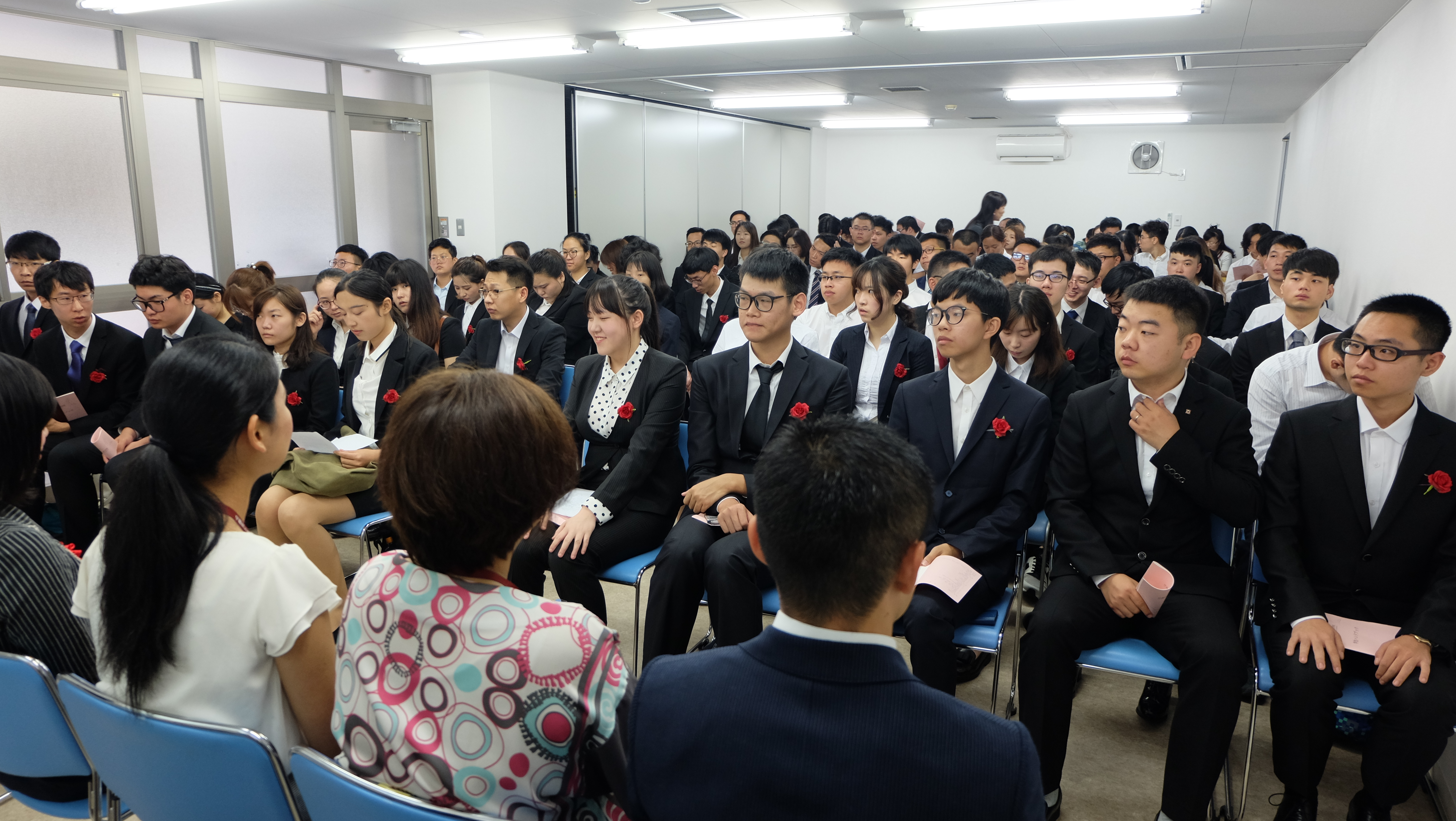 2017年7月、早稲田言語学院では百名近くの新入生を迎え入れました。 7月7日に校内1階の講堂にて入学式を行いました。 最高気温34℃の暑さにも負けず、新入生たちが正装に身を包み、荘厳な式典に参加しました。 入学式では、新入生たちが理事長と学院長の祝辞に耳を傾け、担任の先生方から歓迎の言葉を受けました。また、早稲田大学から駆けつけてくれた優秀な先輩たちによる進学指導に関する説明にも熱心に聞き入っていました。 入学式を通して、新入生の皆さんは改めて日本という異国の地に降り立ち、決して平坦ではない留学の道のスタートラインを踏み越えたことを実感したことでしょう。 早稲田言語学院に入学したこの日は、皆さんの新たな人生の始まりとともに、新しい挑戦の日々の始まりでもあります。 様々な試練が待ち受けているかもしれませんが、早稲田言語学院の教職員全員が皆さんの味方になり全力でサポートしますので、是非皆さんの目標に向かって一緒に頑張りましょう!
