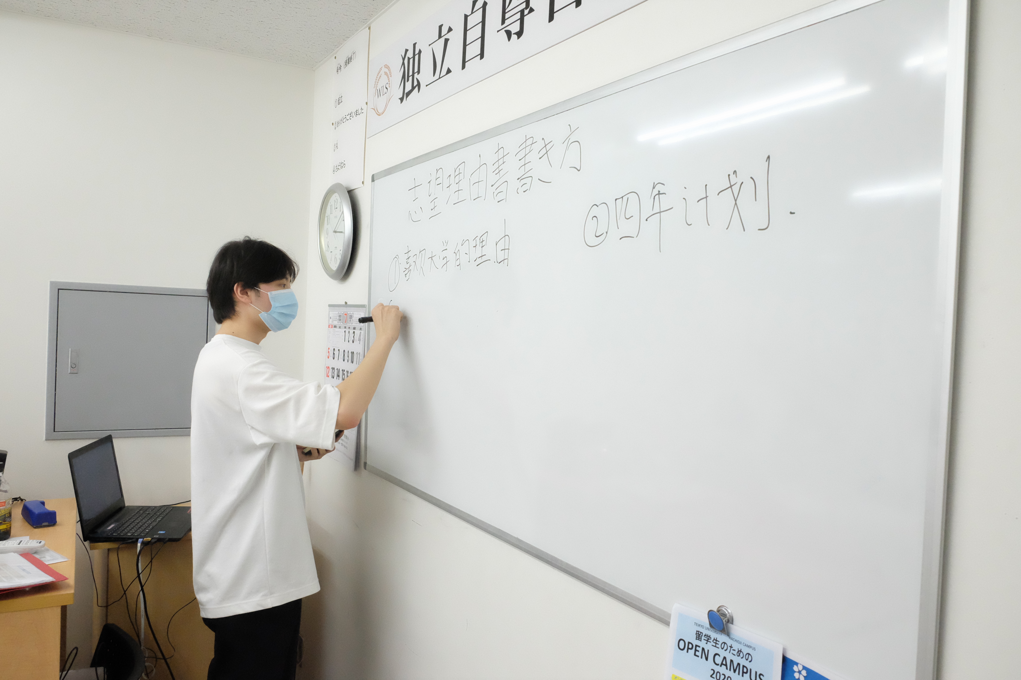 | 我在早言的就读生活和很多同学都比较类似。早上7点半起床,各种准备完毕后会来学校上课。放学后下午回到家开始准备自己研究计划书,出愿准备还有专业课复习这些学习相关的工作。来日本四个月以后,为了锻炼语言和接触社会,我每周给自己安排了2-3次打工,打工的日子下午会工作4小时左右,一直持续到了考试前一周。晚上的时间基本也用来学习。 | ||