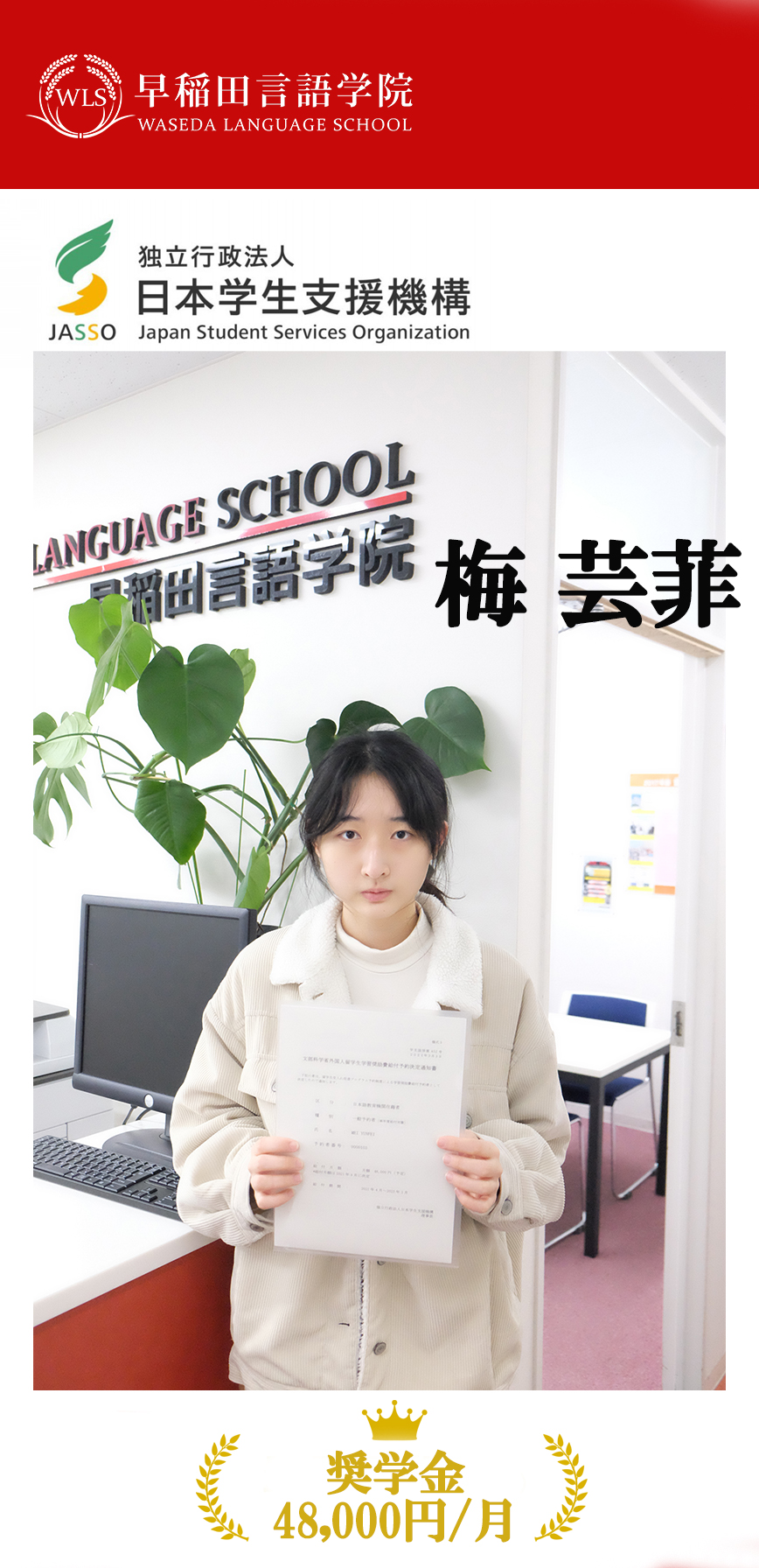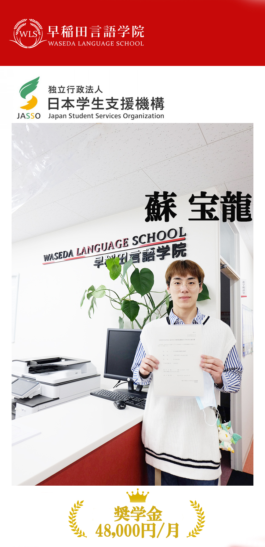 正值毕业之际,恭喜一批同学通过早稻田言语学院获得JASSO奖学金!获得奖学金的同学,在升入新学校后每月可以获得48000日元的奖学金资助。 在升入新学校后每月可以获得48000日元的奖学金资助。 JASSO奖学金目前采用申请制,符合条件的同学都可以在规定时间通过学校报名申请。在日本只要认真学习,就可以通过各种渠道获取多种奖学金补助。早稻田言语学院设有各种多样的奖学金,想了解的同学也可以参看官网的奖学金介绍页面 JASSO奖学金申请条件: 1.获得学校推荐 2.取得留学资格的学生(除接受文部省奖学金以及政府派遣的留学生外) 3.达到年度申请的成绩基准 4.国内汇款生活费在9万日元/月以下的学生 5.在日抚养者年收入未满500万日元的学生 奖学金是激励而非目的,希望同学们都能在早言努力学习,在各种惠学措施的帮助下完成自己的人生梦想! |
