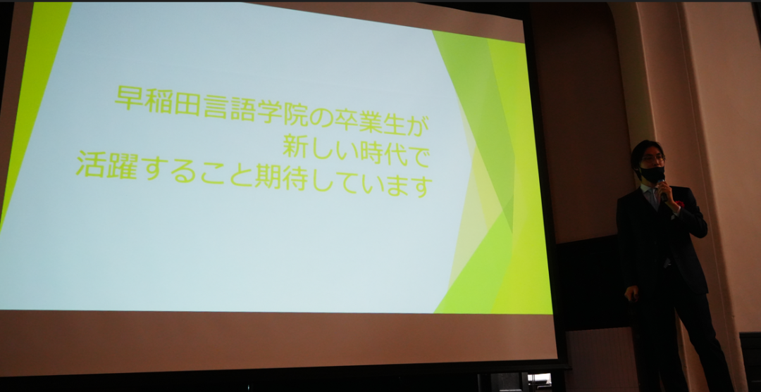 | 在典礼上,早稻田言语学院学院长松冈龙美老师逐一为毕业生同学颁发了毕业证书,为各位优秀毕业生颁发了奖状,并发表了热情洋溢的致辞,表达了对毕业生们的鼓励和祝福。他说:“这些毕业生在全球新冠疫情的考验中,展现了非凡的毅力和勇气。顶住了疫情带来的种种困难,坚持学习,最终实现了自己的梦想。” | |||||